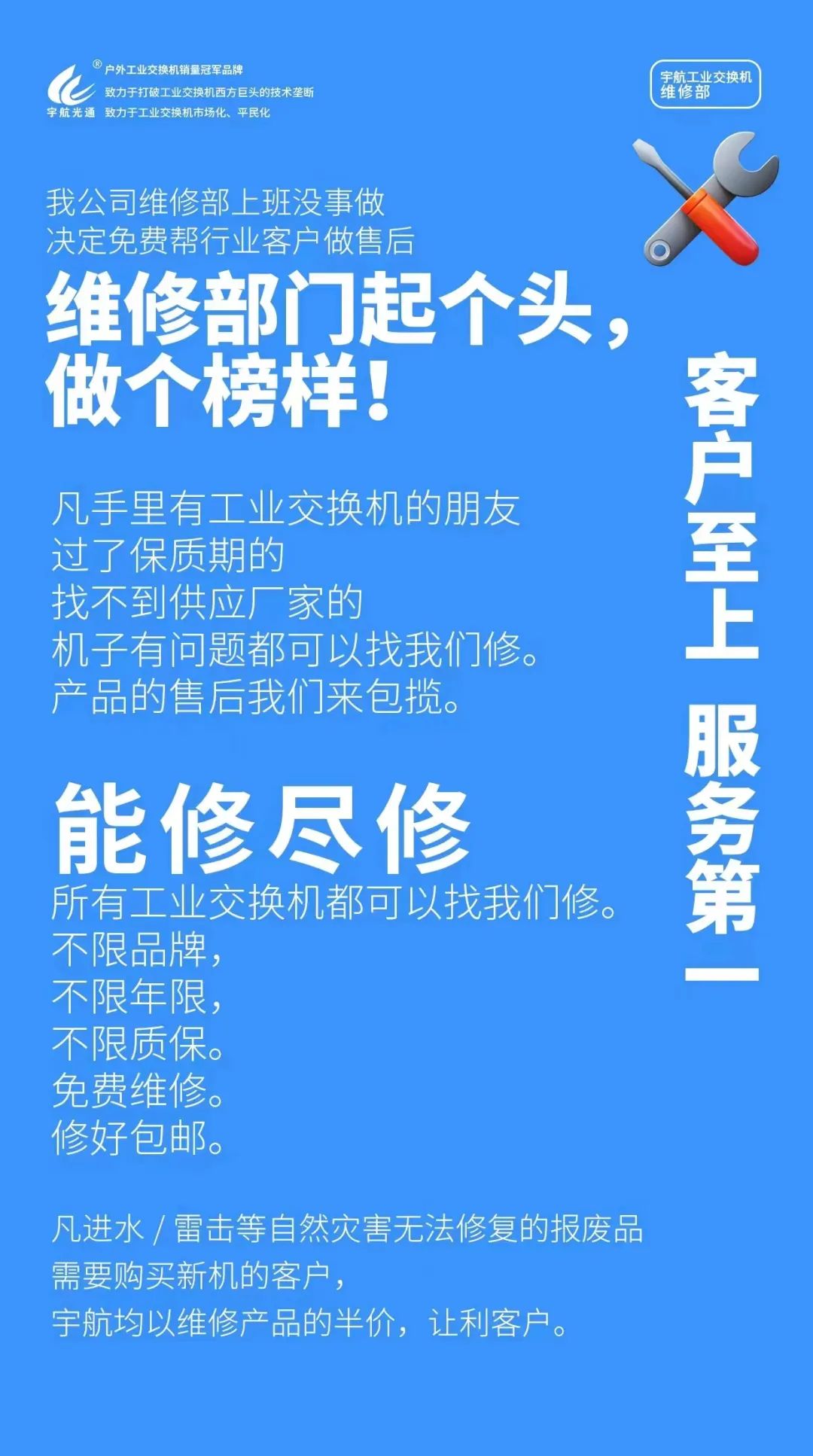 未來(lái),宇航工業(yè)交換機(jī)作為戶外工業(yè)交換機(jī)銷(xiāo)量冠軍品牌,將繼續(xù)秉承客戶至上、服務(wù)第一的理念,不斷創(chuàng)新和進(jìn)取,為客戶提供更加優(yōu)質(zhì)的產(chǎn)品和服務(wù),為行業(yè)的繁榮發(fā)展貢獻(xiàn)更多的力量。