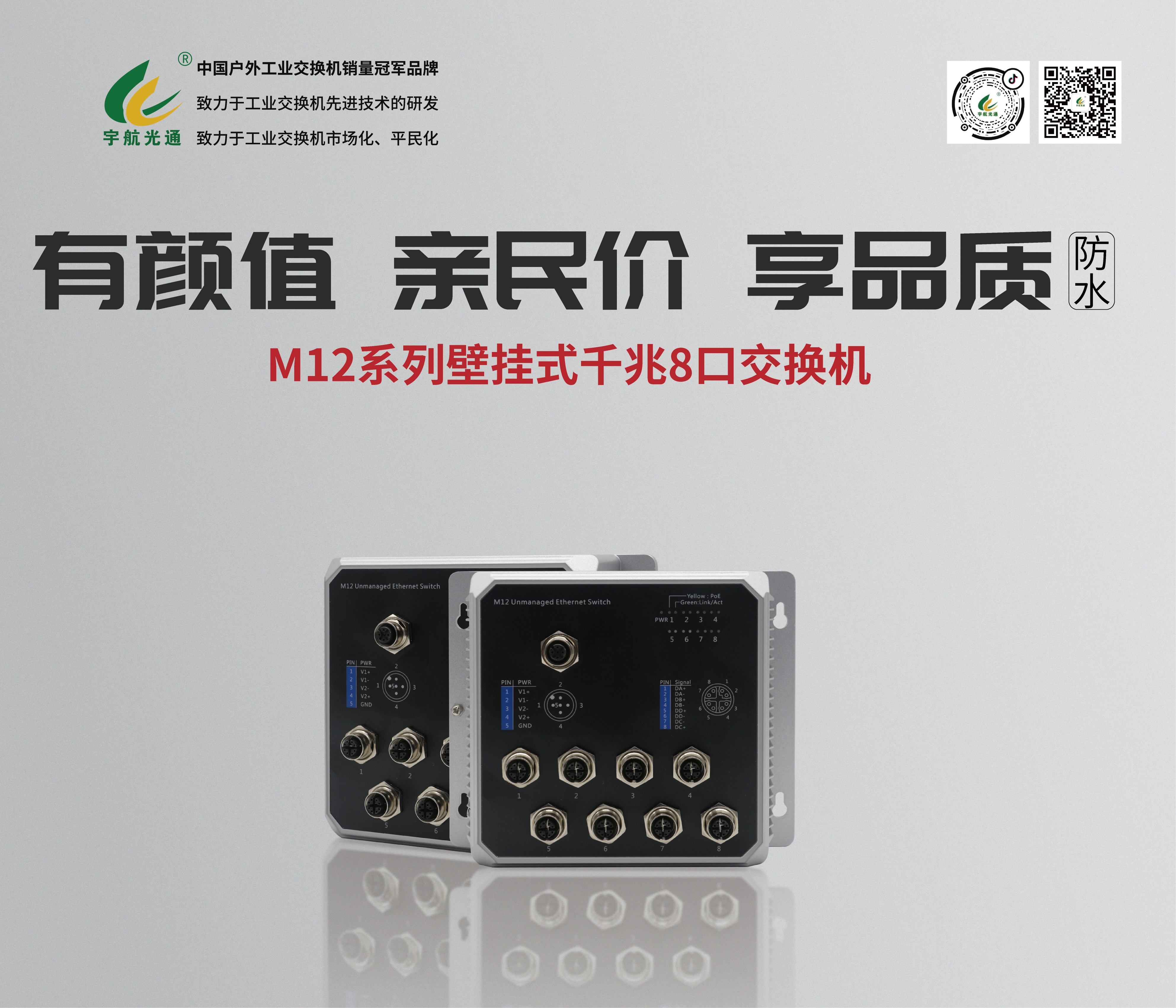 此次展會宇航帶來了顏值與性能完美結(jié)合的M12系列壁掛式交換機(jī),此款交換機(jī)IP66工業(yè)防護(hù)等級防塵防水,采用先進(jìn)的技術(shù)和高質(zhì)量的材料,確保交換機(jī)在惡劣的工業(yè)環(huán)境中依然穩(wěn)定運(yùn)行,防水性能卓越,使用壽命長,以極具競爭力的價格,提供超越同價位產(chǎn)品的性能和體驗(yàn)。