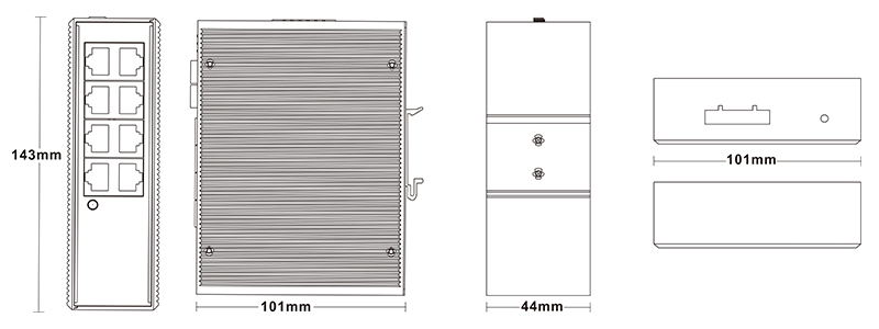 外殼:金屬材質(zhì) 安裝:DIN 卡軌式,壁掛式安裝 重量:0.85Kg 尺寸:179×134×46mm 重量:0.82g |