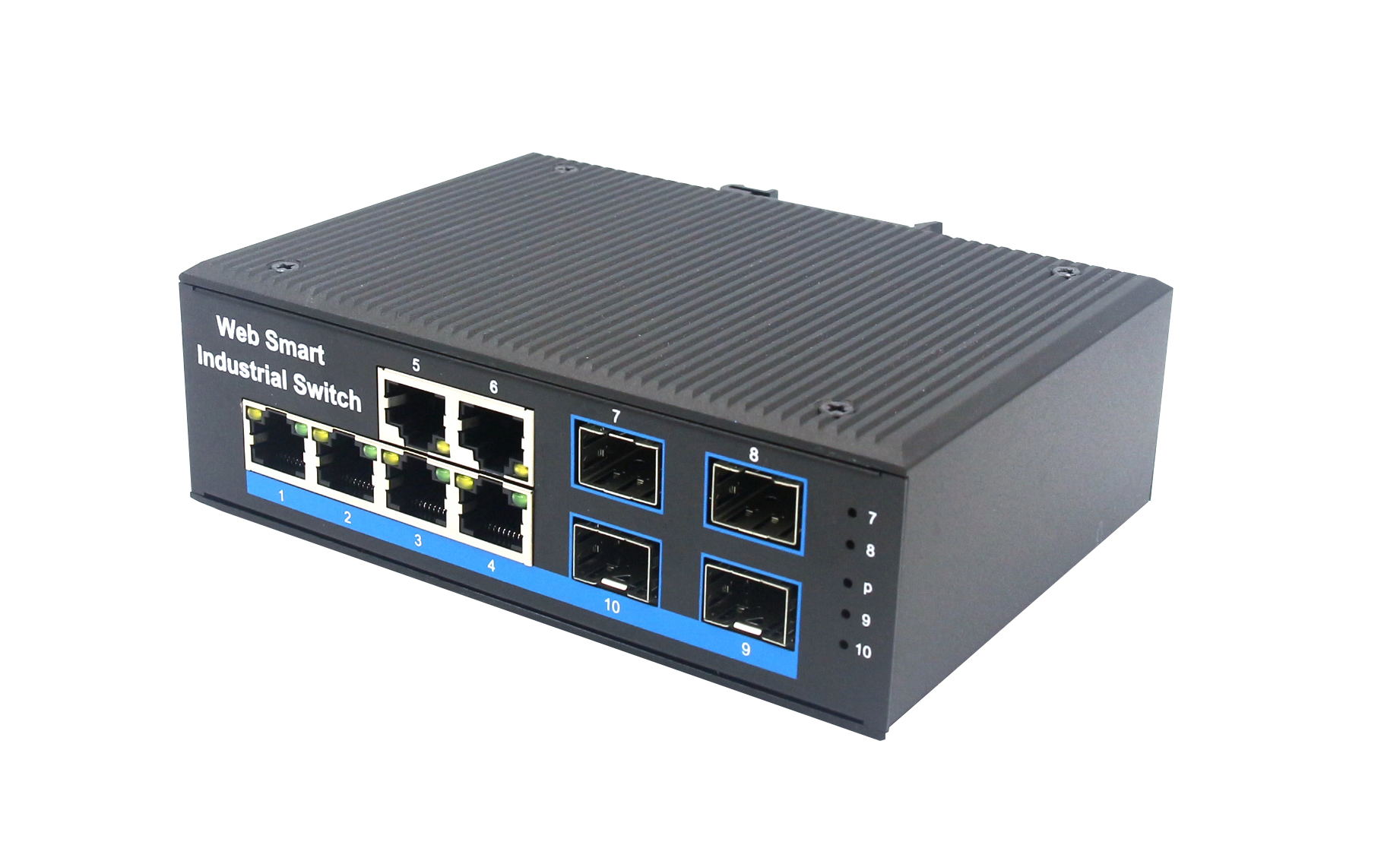 4個(gè)千兆光+6個(gè)千兆電、SFP接口(不含光模塊)、導(dǎo)軌式、DC12-52V供電-寬溫(-40℃-85℃)-支持環(huán)網(wǎng)(ERPS)-WEB管理