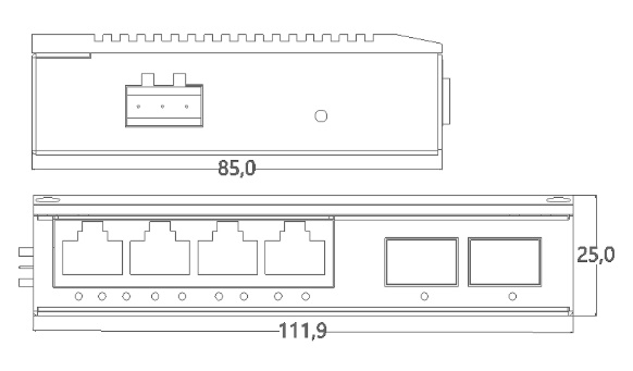 外殼:金屬材質(zhì) 安裝:DIN 卡軌式,壁掛式安裝 重量:0.3Kg 尺寸 :111.9 x 85 x 25mm(長 x 寬 x 高) |