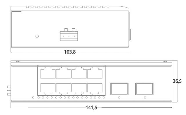 外殼:金屬材質(zhì) 安裝:DIN 卡軌式,壁掛式安裝(可選) 重量:0.4Kg 尺寸 :141.5 x 103.8 x 36.5mm(長(zhǎng) x 寬 x 高) |