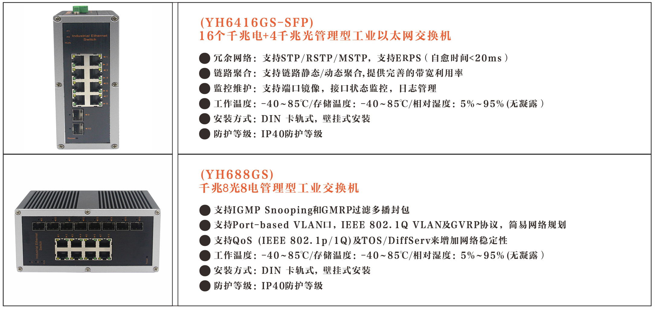 宇航在鋼鐵自動化生產(chǎn)線監(jiān)控解決方案中采用了YH6248GS-SFP,YH688GS,YH6416GS-SFP工業(yè)以太網(wǎng)交換機構(gòu)筑各個車間內(nèi)部通信網(wǎng)絡(luò),在車間內(nèi)部通過YH628GS千兆工業(yè)以太網(wǎng)構(gòu)筑環(huán)網(wǎng),針對實際的站點進行合理的分布,通過虛擬局域網(wǎng)技術(shù)對各個車間之間的數(shù)據(jù)進行邏輯隔離,保證通信的安全性。