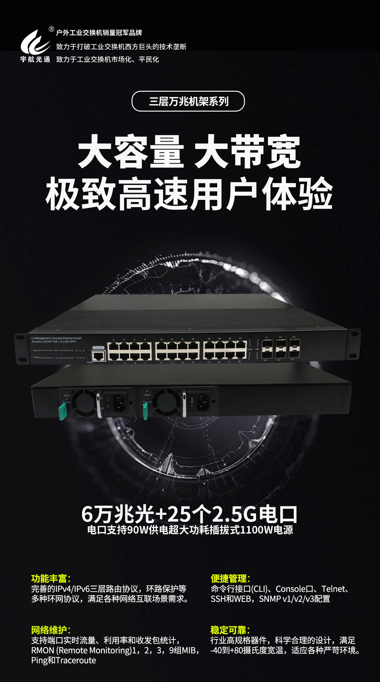 宇航,戶外工業(yè)交換機(jī)銷量冠軍品牌。宇航,致力于打破工業(yè)交換機(jī)西方巨頭的技術(shù)壟斷,致力于工業(yè)交換機(jī)市場化、平民化!